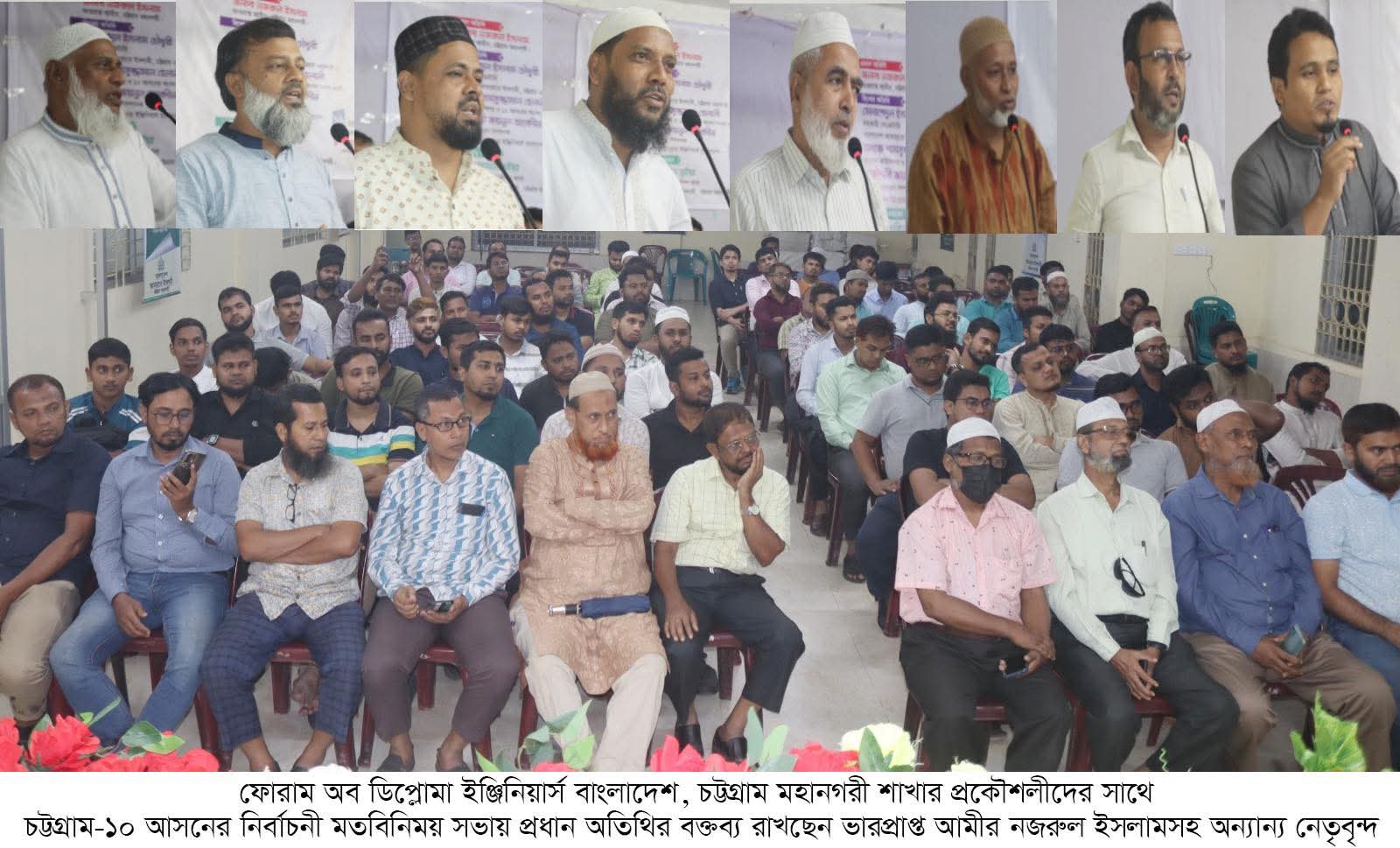 ফোরাম অব ডিপ্লোমা ইঞ্জিনিয়ার্স বাংলাদেশ চট্টগ্রাম মহানগরীর সভাপতি প্রকৌশলী রুহুল আমীন ভূইয়ার সভাপতিত্বে ও , প্রকৌশলী মিজবাহ উদ্দীন ও প্রকৌশলী কে এম ইসহাক,প্রকৌশলী ইয়াছিন আহম্মেদ