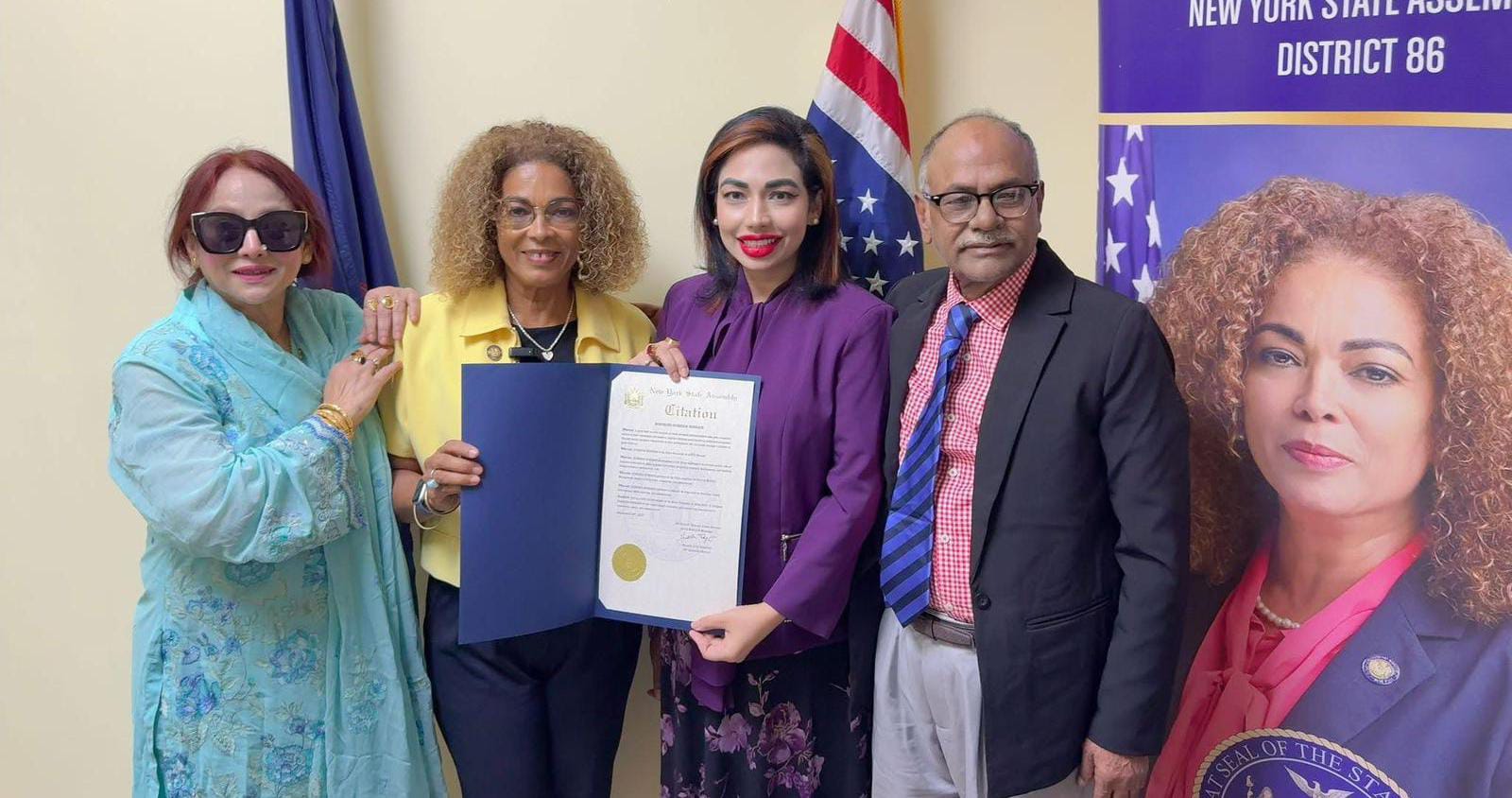 দিনের শুরুতে তিনি নিউইয়র্ক স্টেটের সেনেটর লুইস আর. সেপুলভেদার পক্ষ থেকে মর্যাদাপূর্ণ *“সার্টিফিকেট অফ রিকগনিশন লাভ করেন। পরে নিউইয়র্ক স্টেট অ্যাসেম্বলির সদস্য ইউডেলকা টাপিয়া তাঁর হাতে আরেকটি বিশেষ সম্মাননা তুলে দেন। এ সময় ইউডেলকা টাপিয়া বলেন, সাবরিনা হোসেনের অনুপ্রেরণাদায়ক নেতৃত্ব এবং সমাজ, ন্যায়বিচার ও ক্ষমতায়নের প্রতি তাঁর অঙ্গীকার প্রশংসনীয়।”