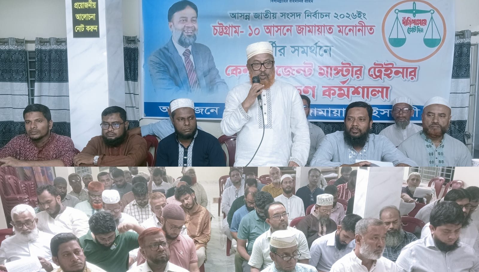 টিভি২৪ বাংলা : বাংলাদেশ জামায়াতে ইসলামী মনোনীত চট্টগ্রাম-১০ আসনের সংসদ সদস্য প্রার্থী অধ্যক্ষ শামসুজ্জামান হেলালীর সমর্থনে কেন্দ্র এজেন্ট মাস্টার ট্রেইনার প্রশিক্ষণ কর্মশালা সফলভাবে সম্পন্ন হয়েছে।