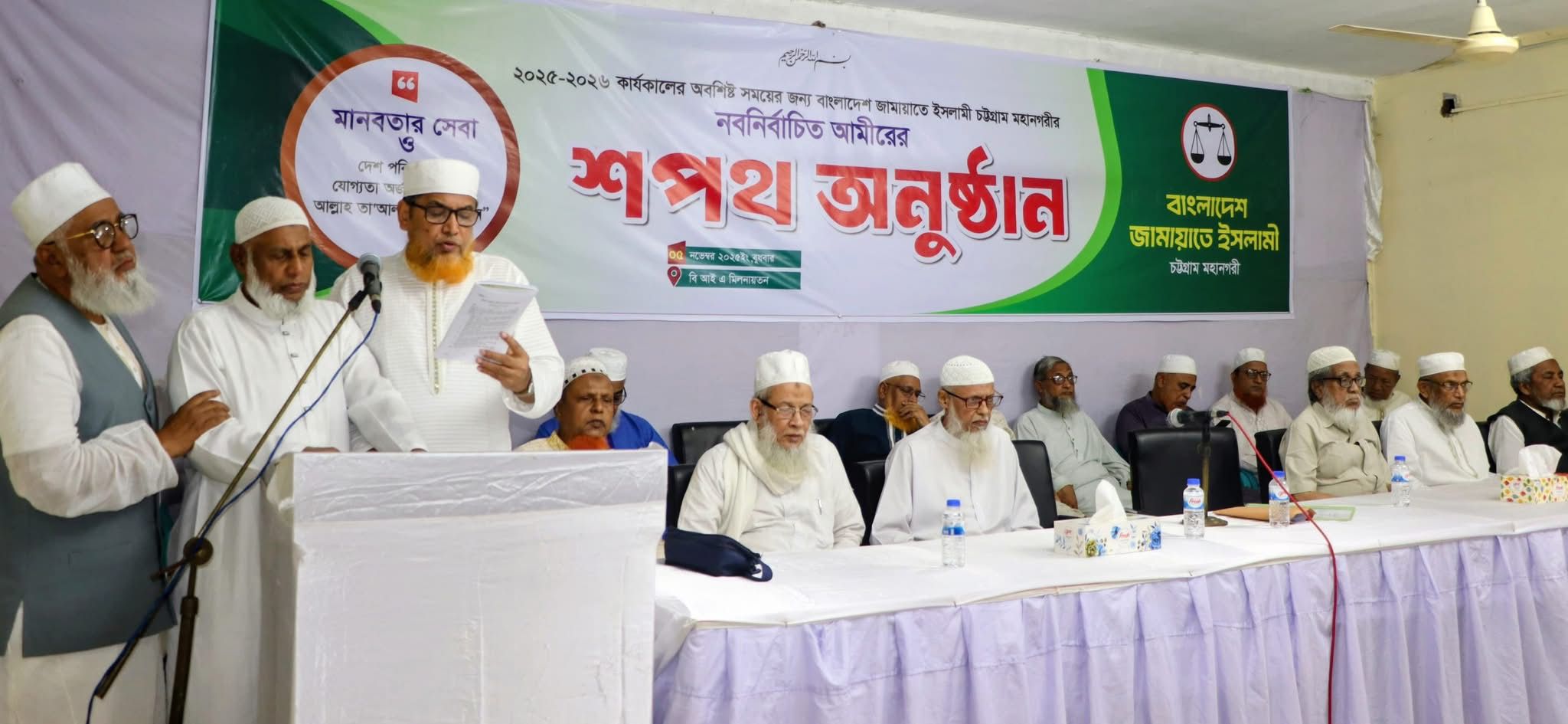 বাংলাদেশ জামায়াতে ইসলামী চট্টগ্রাম মহানগরী জামায়াতের নির্বাচিত আমীর হিসেবে ২০২৫—২০২৬ কার্যকালের অবশিষ্ট সময়ের জন্য শপথ গ্রহণ করেছেন জামায়াতের কেন্দ্রীয় মজলিসে শূরার সদস্য চট্টগ্রাম মহানগরীর নবনির্বাচিত আমীর পরিবেশবিদ মুহাম্মদ নজরুল ইসলাম।