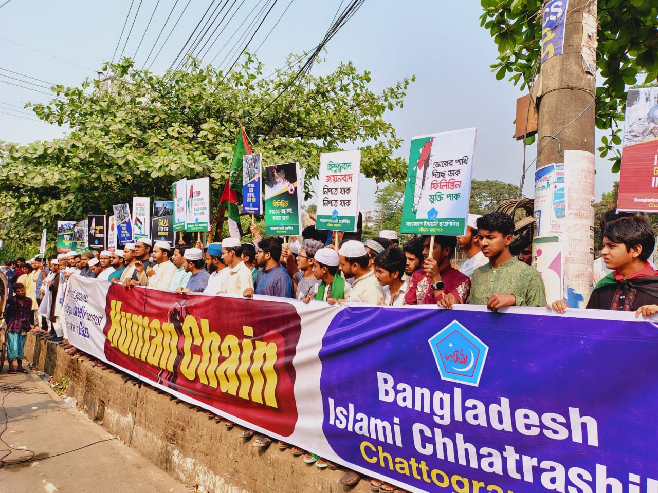 মানববন্ধনে অন্যানের মধ্যে আরো উপস্থিত ছিলেন চট্টগ্রাম মহানগর দক্ষিণ সেক্রেটারী মাইমুনুল ইসলাম মামুন ও উত্তরের সাংগঠনিক সম্পাদক খুররম মুরাদ অন্যান্য নেতৃবৃন্দ।